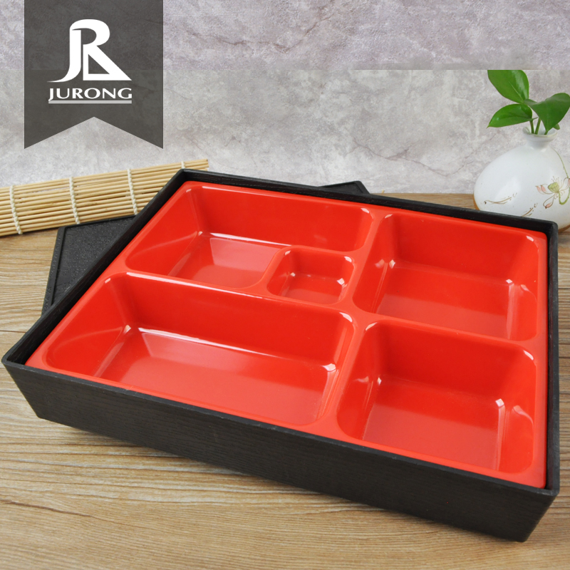 Toptan yemek gereçleri dayanıklı bölme plastik melamin bento yemek kabı 4 bölüm